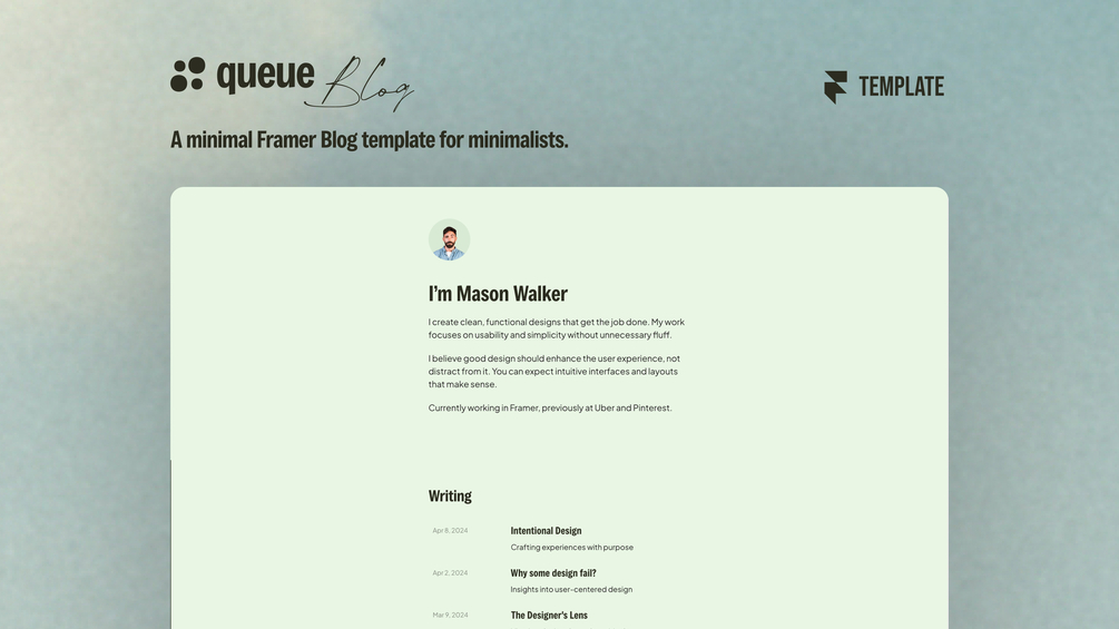 (Free) Queue Blog - A minimal Framer Blog template for minimalists.